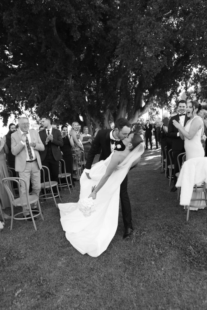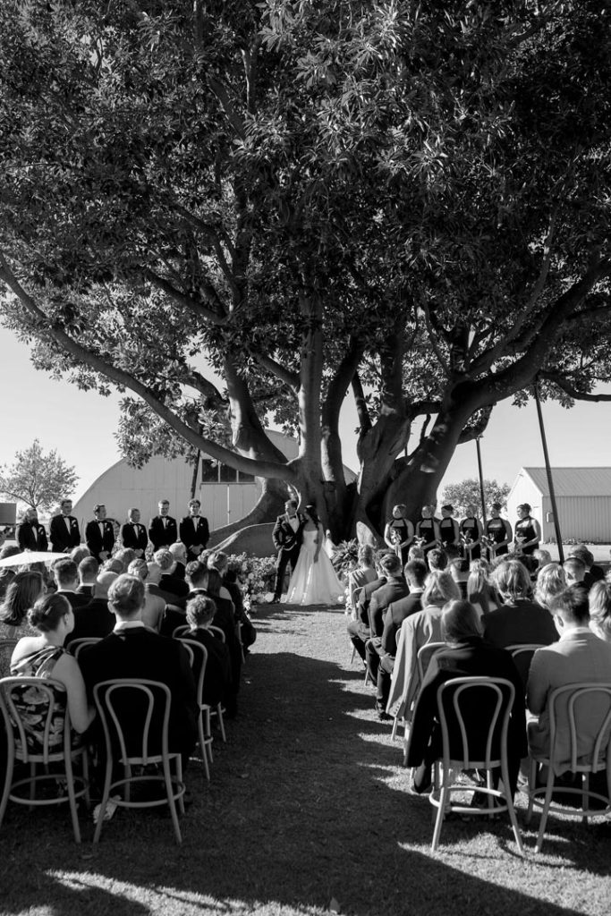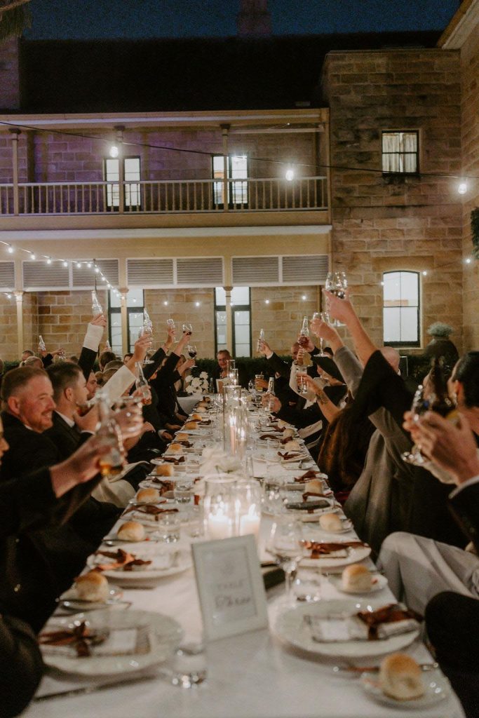 Ceremony, cocktail hour, and reception all unfold within the estate’s grounds. Couples can exchange vows in the charming Chapel, beneath the 150-year-old Grand Fig Tree, or within the Courtyard gardens. Afterwards, guests can enjoy cocktails on the lawns before moving to either the Courtyard or The Hangar for their reception. Jimbour House offers flexibility and flow, creating a seamless celebration from start to finish.